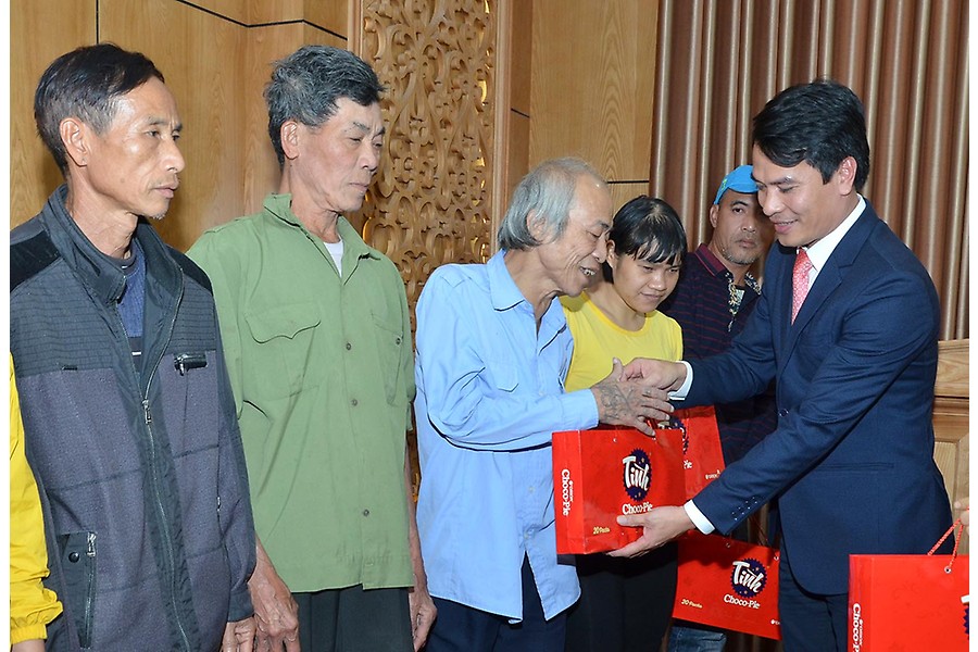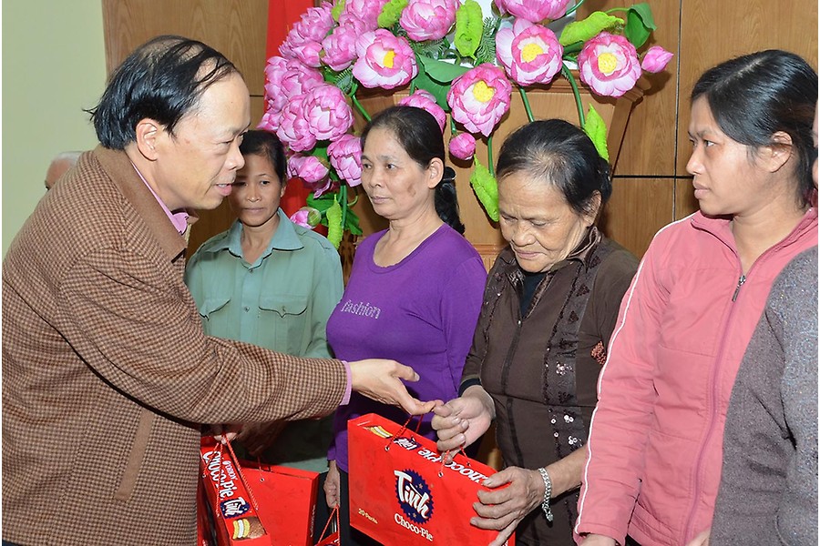 Đồng chí Lê Trọng Nghĩa, Tổng Biên tập Báo Hải Phòng trao quà tặng các hộ có hoàn cảnh khó khăn trên địa bàn quận Kiến An