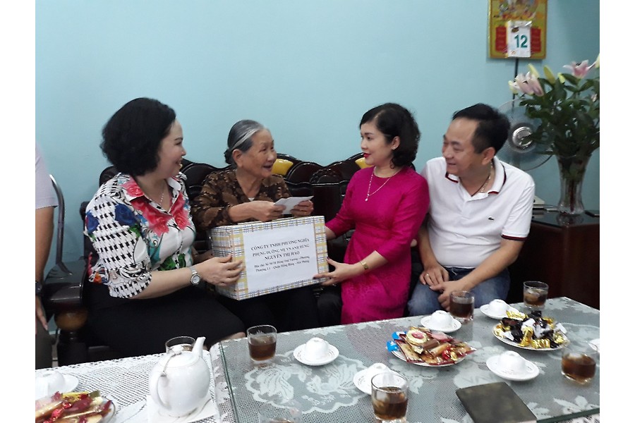 Lãnh đạo UBND quận Hồng Bàng và Công ty TNHH Phương Nhĩa trao quà, tiền phụng dưỡng Mẹ VNAH Nguyễn Thị Hảo