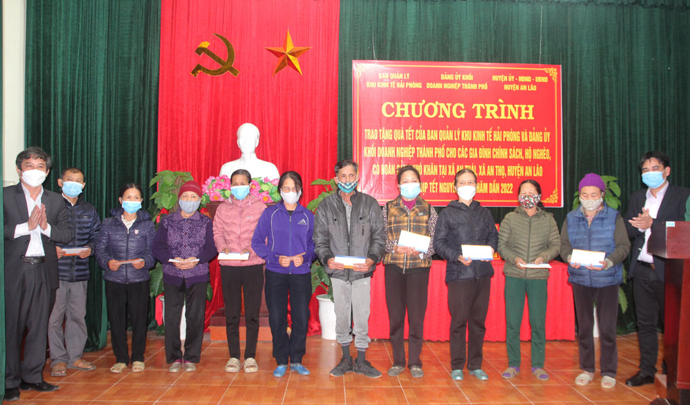 Tại chương trình, Ban Quản lý Khu Kinh tế Hải Phòng và Đảng ủy Khối Doanh nghiệp thành phố đã trao tặng 200 suất quà, với tổng trị giá 100 triệu đồng cho các gia đình chính sách, hộ nghèo, hộ có hoàn cảnh khó khăn trên địa bàn xã An Thái và xã An Thọ.