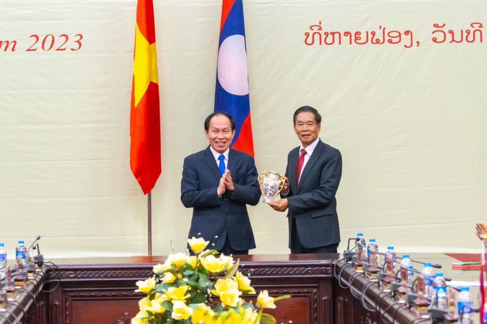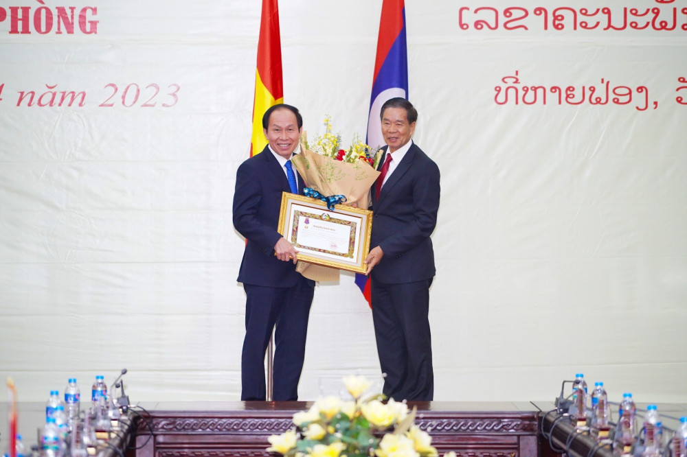 Khi được Đảng phân công giữ chức vụ Bí thư Thành ủy Hải Phòng, đồng chí cũng rất vui mừng khi những năm qua, quan hệ hợp tác giữa thành phố Hải Phòng với tỉnh Viêng Chăn và tỉnh U-đôm-xay đạt được nhiều thành quả tốt đẹp trên các lĩnh vực xây dựng đảng, chính quyền, giáo dục và đào tạo, y tế, du lịch, hợp tác đầu tư, thương mại… Đặc biệt, đối với hoạt động đối ngoại nhân dân, Hội hữu nghị Việt-Lào thành phố là một trong những hội có quy mô lớn nhất và hoạt động thường xuyên, đa dạng, với 12 chi hội, 3.700 hội viên. Hằng năm, Hội tổ chức nhiều hoạt động ý nghĩa như: Giao lưu văn hóa, đền ơn đáp nghĩa, tham gia tổ chức Tết cổ truyền cho lưu học sinh Lào đang học tập tại thành phố, tổ chức gặp mặt và vinh danh các cựu quân tình nguyện và chuyên gia tại Lào của Hải Phòng… qua đó gắn kết tình cảm giữa Nhân dân hai nước láng giềng, “hai nước anh em, đồng chí”.