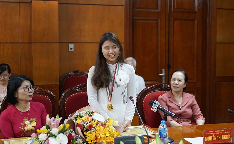 Phát biểu tại buổi biểu dương, khen thưởng, đồng chí Lê Văn Thành, Bí thư Thành ủy, Chủ tịch HĐND thành phố chúc mừng, ghi nhận và cảm ơn em Trần Thị Minh Anh cùng các thầy cô giáo, phụ huynh về thành tích đặc biệt này. Đồng chí Bí thư cũng mong muốn các em học sinh đoạt giải quốc tế tiếp tục học tập tốt và trở về thành phố công tác. Đồng chí Bí thư Thành ủy đề nghị các ngành, các cấp, tổ chức kinh tế, xã hội, doanh nghiệp chung tay cùng thành phố trong lĩnh vực giáo dục, nhất là trong phát hiện, chăm sóc, động viên nhân tài, tạo môi trường thuận lợi để người tài có điều kiện tốt nhất làm việc, cống hiến cho thành phố; các cấp ủy Đảng và chính quyền các cấp quan tâm hơn nữa tới việc cải thiện và nâng cao đời sống của đội ngũ giáo viên để các thầy, cô giáo toàn tâm, toàn ý phục vụ sự nghiệp giáo dục của thành phố.