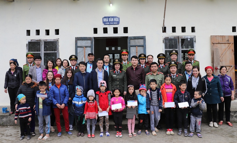 Đại diện Báo An ninh Hải Phòng, CAP Lạch Tray và Ngân hàng Vietinbank chi nhánh Lê Chân trao học bổng tặng các em học sinh xóm Pác Mác