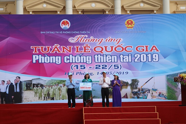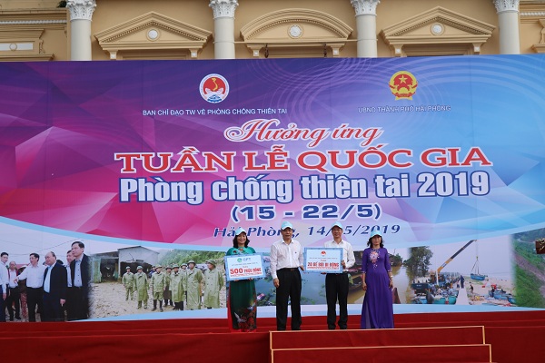 Tại lễ phát động, Quỹ cộng đồng Phòng, tránh thiên tai đã trao tặng Sở GD&ĐT thành phố 500 triệu đồng, phục vụ công tác tuyên truyền, giáo dục “xây dựng cộng đồng an toàn trước thiên tai bắt đầu từ trường học”; Ban Chỉ đạo TW về phòng chống thiên tai và Ban Chỉ huy PCTT&TKCN thành phố trao tặng 40 chiếc bể bơi di động cho các trường học trên địa bàn thành phố nhằm giúp các em học sinh học bơi, phòng chống đuối nước.