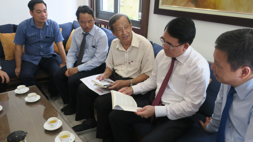 Tại đây, lãnh đạo thành phố cùng Nhà báo Kim Toàn ôn lại những tác phẩm hay, đánh dấu tên tuổi Nhà báo, để lại ấn tượng sâu sắc đối với nhiều thế hệ độc giả của thành phố.