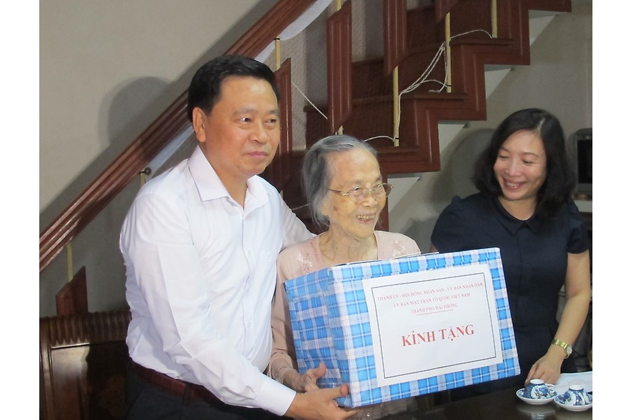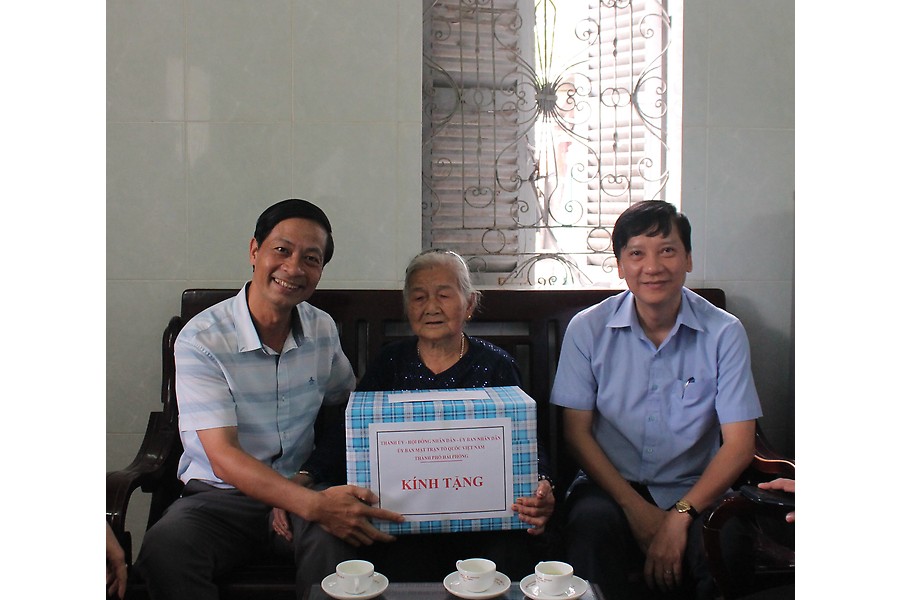 Đoàn đến thăm và tặng quà các gia đình: cụ Nguyễn Đá, cán bộ lão thành cách mạng, tại số nhà 7 tập thể Không quân, Tổ dân phố số 11, phường Thành Tô; cụ Trần Đăng Giáp, cán bộ tiền khởi nghĩa, tại số 6B28, phường Cát Bi. Tại các gia đình, đồng chí Chủ tịch Ủy ban MTTQ Việt Nam thành phố ghi nhận và bày tỏ lòng biết ơn công lao đóng góp của các cán bộ lão thành cách mạng, cán bộ tiền khởi nghĩa trong sự nghiệp xây dựng và bảo vệ Tổ quốc. Đồng chí chúc các cụ và gia đình luôn mạnh khỏe, tiếp tục phát huy kinh nghiệm, trí tuệ, đóng góp ý kiến xây dựng quê hương, đất nước ngày càng giàu mạnh.