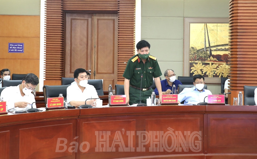 Các đồng chí lãnh đạo UBND thành phố nêu quan điểm: Cần yêu cầu tất cả người từ thành phố Hồ Chí Minh về Hải Phòng thực hiện cách ly y tế tập trung. Thành phố thuê thêm khách sạn để đưa những người ở vùng dịch từ chốt kiểm soát dịch về cách ly y tế. Đồng thời, tăng cường hoạt động của các tổ kiểm soát dịch bệnh COVID-19 tại các thôn, tổ dân phố…