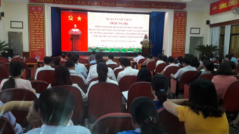 Vừa qua, Quận ủy Lê Chân tổ chức triển khai kế hoạch tổ chức hội thi quận Lê Chân đẩy mạnh học tập và làm theo tư tưởng đạo đức phong các Hồ Chí Minh với chủ đề “ Lê Chân trong trái tim tôi”.