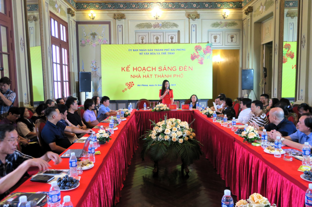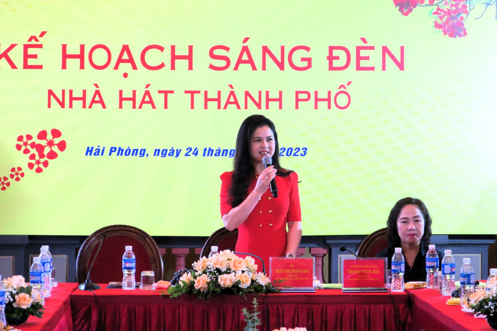 Phát biểu tại Hội nghị, đồng chí Trần Thị Hoàng Mai, Giám đốc Sở Văn hóa và Thể thao Hải Phòng mong muốn các cơ quan Ban, ngành của Trung ương, địa phương, các doanh nghiệp, đơn vị tổ chức sự kiện, các văn nghệ sĩ, các cơ quan báo chí đồng hành, kết nối hoạt động Sáng đèn Nhà hát thành phố Hải Phòng, và coi đây vừa là trách nhiệm vừa là tình cảm để cùng nhau tạo nên những màu sắc ánh sáng tuyệt đẹp, những tác phẩm nghệ thuật chất lượng cho “Thánh đường nghệ thuật” có sức lan toả, đáp ứng thị hiếu thẩm mỹ ngày càng cao của công chúng.