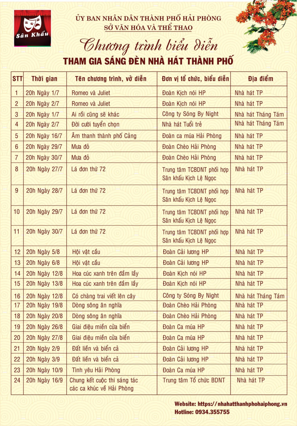 Kế hoạch được triển khai từ tháng 7/2023 với 02 đêm ngày 01 và 02/7/2023, Vở diễn kinh điển Romeo và Julyet sẽ mở màn Kế hoạch “Sáng đèn Nhà hát thành phố Hải Phòng”.