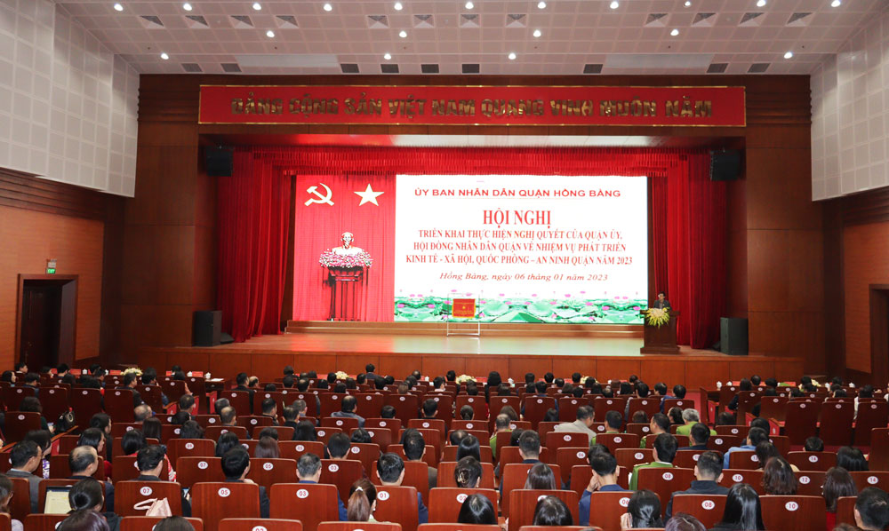Phát biểu tại Hội nghị, đồng chí Lê Khắc Nam, Phó Chủ tịch UBND thành phố ghi nhận và đánh giá cao sự nỗ lực, cố gắng, quyết tâm của cả hệ thống chính trị và Nhân dân quận Hồng Bàng năm 2022, đã đóng góp vào những thành tựu chung của thành phố. Đồng chí nhấn mạnh, năm 2023 là năm bản lề có ý nghĩa quan trọng trong việc tăng tốc thực hiện và phấn đấu hoàn thành các chỉ tiêu Nghị quyết Đại hội Đảng bộ thành phố, Nghị quyết Đại hội Đảng bộ quận nhiệm kỳ 2020-2025 và Kế hoạch phát triển kinh tế-xã hội 5 năm đã đề ra. Để thực hiện thắng lợi các nhiệm vụ đặt ra đòi hỏi Đảng bộ, chính quyền và Nhân dân quận Hồng Bàng phải tiếp tục giữ đoàn kết, nỗ lực phấn đấu với quyết tâm chính trị cao nhất; trong đó tập thể lãnh đạo Quận ủy-HĐND-UBND quận phải năng động, đổi mới, sáng tạo, quyết liệt hơn trong triển khai các nhiệm vụ.