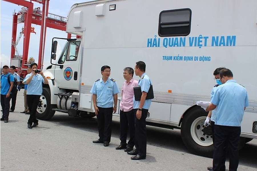Cục Kiểm định hải quan vừa triển khai trạm kiểm định di động trực tiếp lấy mẫu, kiểm định tại chỗ đối với lô hàng thép, phế liệu nhập khẩu và hạt nhựa tại cảng Hải Phòng.
