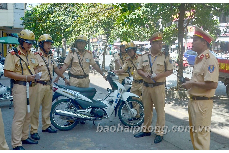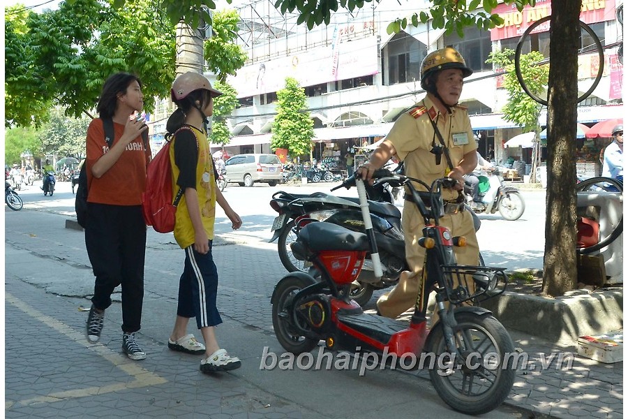 Sáng 25-9, Đội cảnh sát giao thông số 1 Phòng Cảnh sát giao thông đường bộ đường sắt (Công an thành phố) tổ chức kiểm tra việc chấp hành các quy định luật Giao thông đường bộ của học sinh, sinh viên tại khu vực ngã tư An Dương (quận Lê Chân).