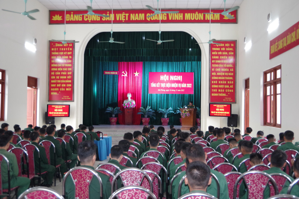 Năm 2022, Đảng uỷ, Chỉ huy Trung đoàn đã quán triệt và triển khai thực hiện nghiêm túc các chỉ thị, nghị quyết, kế hoạch của cấp trên; tập trung lãnh đạo đơn vị hoàn thành toàn diện các nhiệm vụ, nổi bật là: Duy trì nghiêm chế độ trực SSCĐ; làm tốt công tác chuẩn bị huấn luyện như: Sổ sách, giáo án, bài giảng; tu sửa và làm mới trên 1.400 bia bảng, mô hình học cụ, thao trường huấn luyện các nội dung; tích cực nghiên cứu sáng kiến, cải tiến mô hình, học cụ đưa vào phục vụ huấn luyện (toàn Trung đoàn có 17 sáng kiến, cải tiến mô hình học cụ huấn luyện, trong đó có nhiều sáng kiến có giá trị, tính ứng dụng cao). Tổ chức huấn luyện cho các đối tượng mới kết quả đạt khá, trong quá trình huấn luyện đã thực hiện đúng phương châm “Cơ bản-thiết thực-vững chắc“; tham gia diễn tập Chỉ huy-Tham mưu 1 bên 3 cấp trên bản đồ cùng Quân khu, khu vực phòng thủ quận Dương Kinh hoàn thành tốt nhiệm vụ; đăng cai và tham gia hội thi, hội thao cấp Bộ CHQS thành phố, Quân khu đạt kết quả tốt và hoàn thành toàn diện các nội dung, tiêu chí phúc tra “Xây dựng đơn vị nuôi quân giỏi, quản lý quân nhu tốt” được Ban Tổ chức phúc tra đánh giá cao. Bên cạnh đó, đẩy mạnh công tác tăng gia sản xuất, nâng cao đời sống vất chất, tinh thần của bộ đội. Thực hiện tốt công tác bảo đảm kỹ thuật, quản lý chặt chẽ vĩ khí trang bị, kho tàng, phương tiện cho thực hiện nhiệm vụ thường xuyên cũng như đột xuất của đơn vị…
