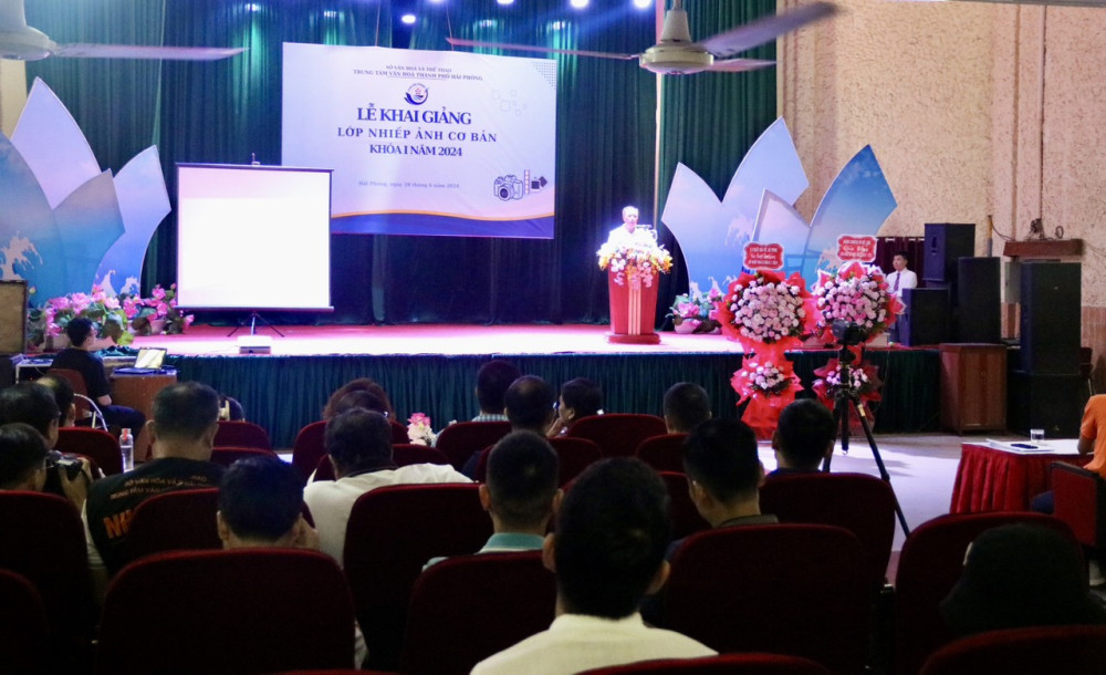 Chiều 28/6, Trung tâm Văn hóa thành phố tổ chức Khai giảng lớp Nhiếp ảnh cơ bản khóa 1 năm 2024. Tham dự chương trình có đại diện lãnh đạo các cơ quan, đơn vị liên quan cùng đông đảo thành viên Câu lạc bộ Nhiếp ảnh trẻ Hải Phòng và người yêu nghệ thuật nhiếp ảnh thành phố.