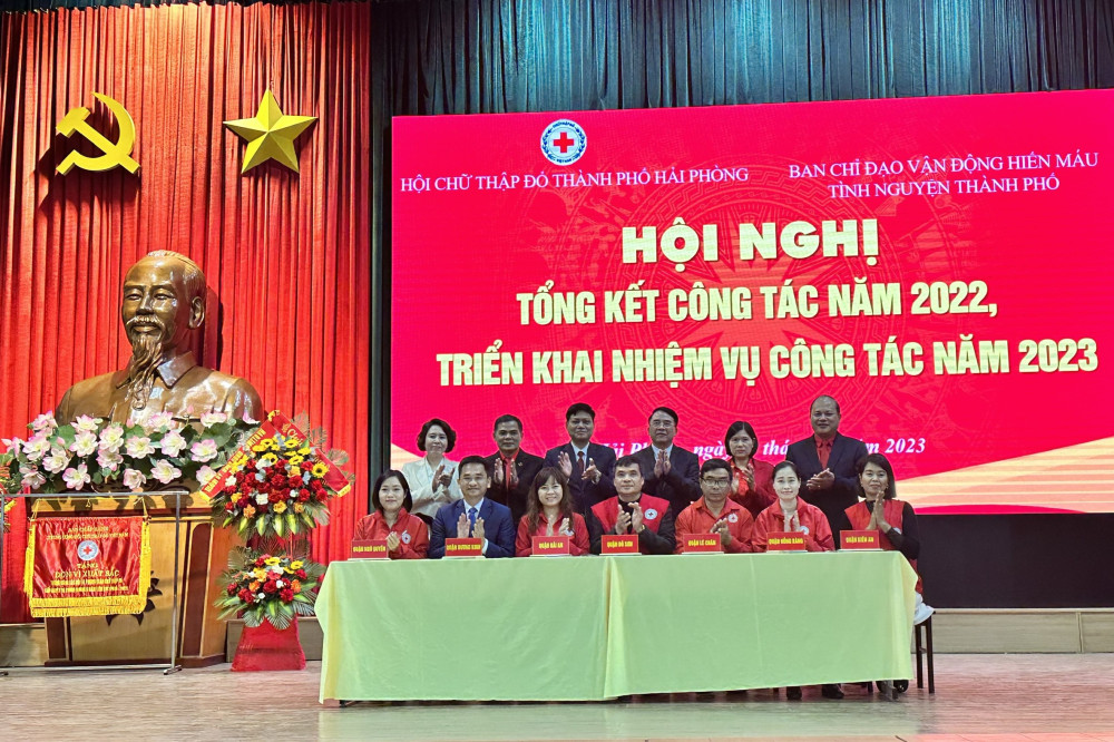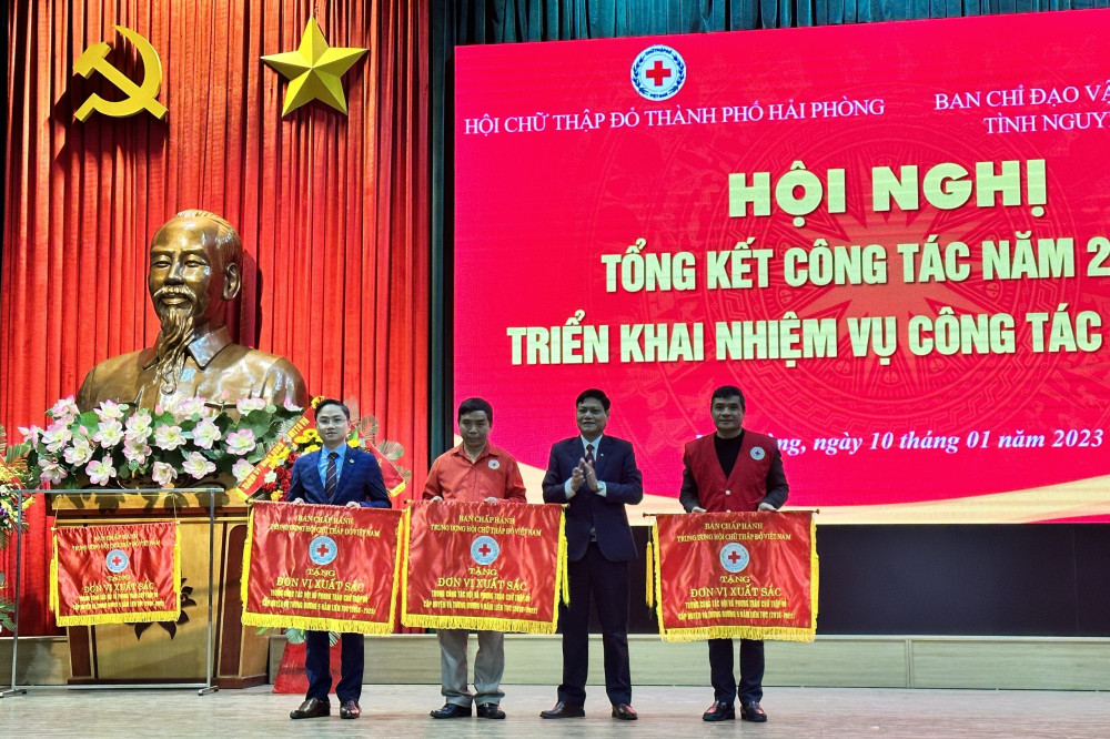 Nhân dịp này, Trung ương Hội Chữ thập đỏ Việt Nam trao tặng Cờ thi đua cho 4 đơn vị thuộc thành phố Hải Phòng có thành tích xuất sắc trong công tác Hội và phong trào Chữ thập đỏ 5 năm liên tục, giai đoạn 2018-2022; tặng Bằng khen cho 73 tập thể và 73 cá nhân có thành tích xuất sắc trong công tác Hội và phong trào Chữ thập đỏ năm 2022; tặng Bằng khen cho 8 tập thể và 01 cá nhân có thành tích xuất sắc trong công tác hiến máu tình nguyện năm 2022. UBND thành phố tặng Bằng khen cho 13 tập thể và 6 cá nhân có thành tích xuất sắc trong công tác vận động hiến máu tình nguyện năm 2022.