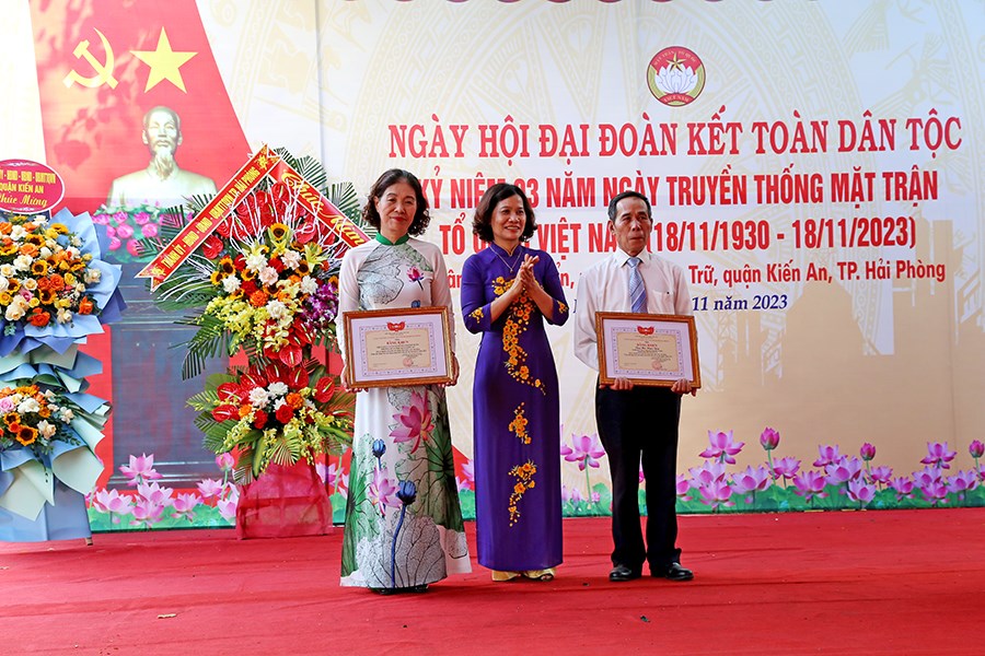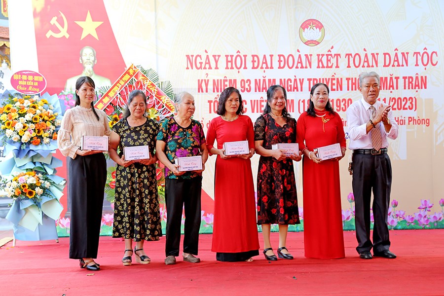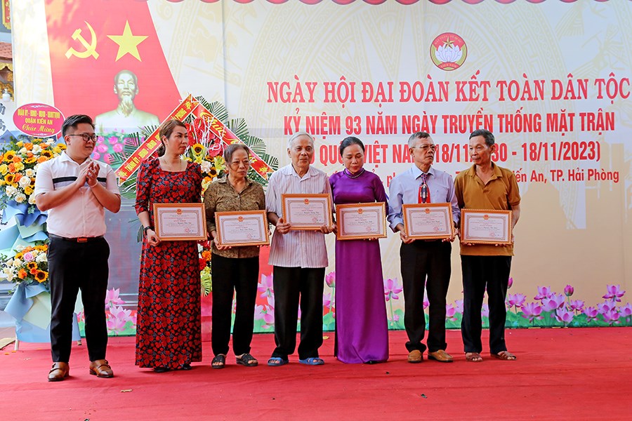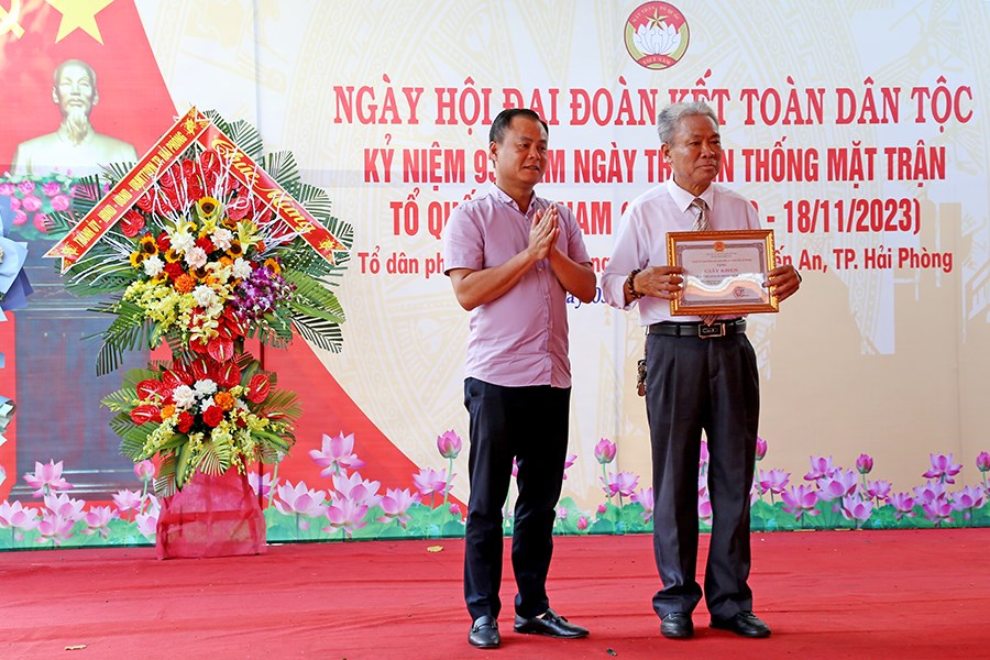 Nhân dịp này, Trưởng Ban Dân vận Thành ủy Lê Trí Vũ tặng hoa chúc mừng cho Tổ dân phố Lê Duẩn; Ủy ban MTTQ Việt Nam thành phố tặng Bằng khen cho 01 tập thể, 01 cá nhân; UBND quận Kiến An tặng Giấy khen cho Tổ dân phố Lê Duẩn; UBND phường Quán Trữ tặng Giấy khen cho 07 gia đình văn hóa tiêu biểu; Tổ dân phố Lê Duẩn tặng quà cho 07 gia đình văn hóa tiêu biểu.