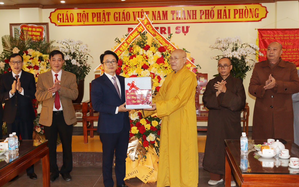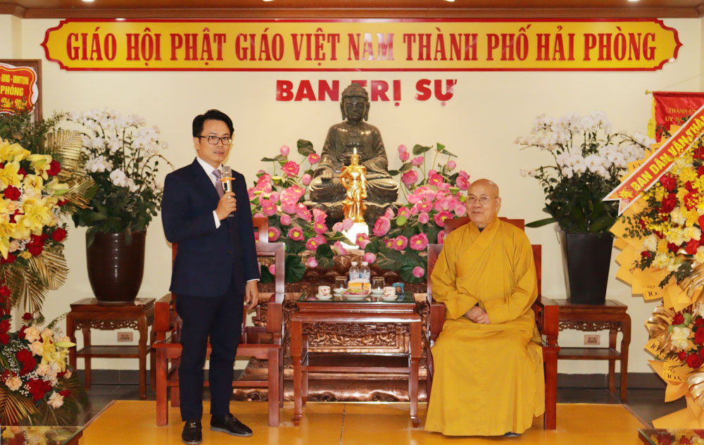 Nhân dịp đón Xuân Quý Mão năm 2023, đồng chí Trưởng Ban Dân vận Thành ủy gửi những lời chúc tốt đẹp nhất tới Ban Trị sự Giáo hội Phật giáo thành phố và Hòa thượng Thích Quảng Tùng, mong rằng Ban Trị sự Giáo Hội Phật giáo thành phố và Hòa thượng Thích Quảng Tùng sẽ tiếp tục đồng hành cùng sự nghiệp phát triển chung của thành phố Hải Phòng.