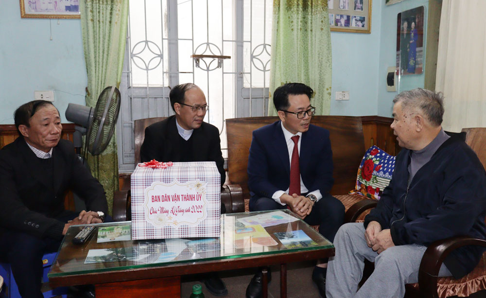 Đồng chí Lê Trí Vũ, Trưởng Ban Dân vận Thành ủy cũng đến thăm, tặng quà ông Vũ Đình Bẩy, sinh năm 1951, ở Tổ dân phố số 7, phường Lãm Hà, là giáo dân tiêu biểu. Đồng chí chúc ông và gia đình đón Giáng sinh vui vẻ, hạnh phúc, tiếp tục phát huy khối đại đoàn kết toàn dân tộc, thực hiện tốt phương châm sống tốt đời, đẹp đạo, tích cực tham gia các phong trào thi đua yêu nước, góp phần vào sự phát triển chung của địa phương trong thời gian tới.