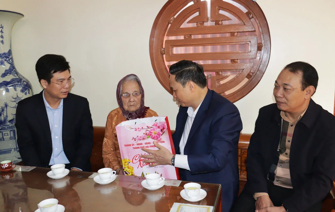 Đồng chí Đặng Bá Cường, Trưởng Ban Nội chính Thành ủy đến thăm, tặng quà, chúc Tết các Mẹ Việt Nam anh hùng: Nguyễn Thị Hiều, sinh năm 1927, tại xã Tú Sơn, huyện Kiến Thụy; Cao Thị Mó, sinh năm 1929, tại Tổ dân phố Trung Quý, phường Bàng La, quận Đồ Sơn; Đỗ Thị Chuyết, sinh năm 1921, tại Tổ dân phố Trung Nghĩa 1, phường Hợp Đức, quận Đồ Sơn.