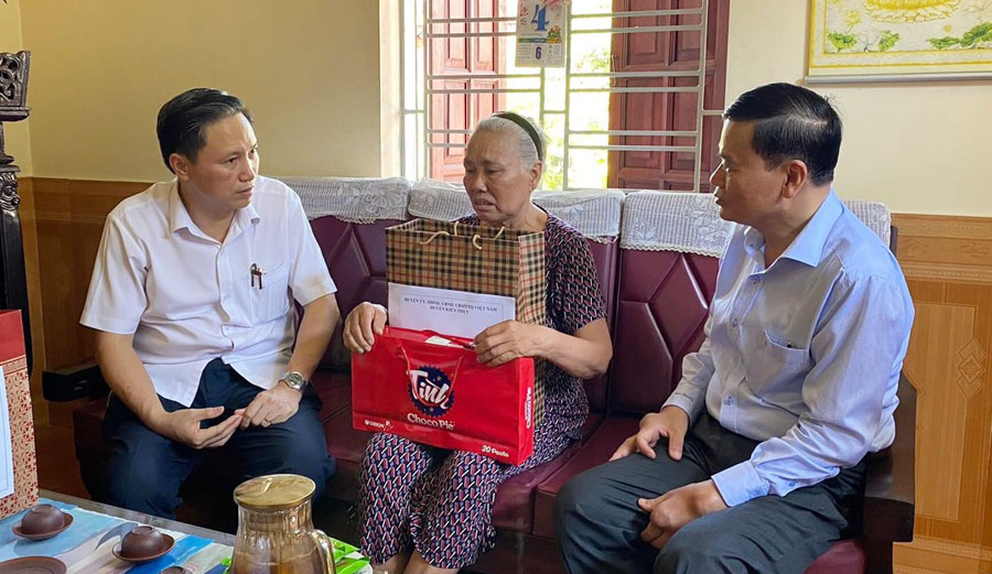 Nhân dịp kỷ niệm 75 năm Ngày Thương binh, liệt sỹ (27/7/1947-27/7/2022), chiều 16/7, đồng chí Đặng Bá Cường, Ủy viên Ban Thường vụ Thành ủy, Trưởng Ban Nội chính Thành ủy đi thăm, tặng quà đối tượng chính sách trên địa bàn huyện Kiến Thụy. Cùng đi có đại diện lãnh đạo Sở Lao động-Thương binh và Xã hội và huyện Kiến Thụy.