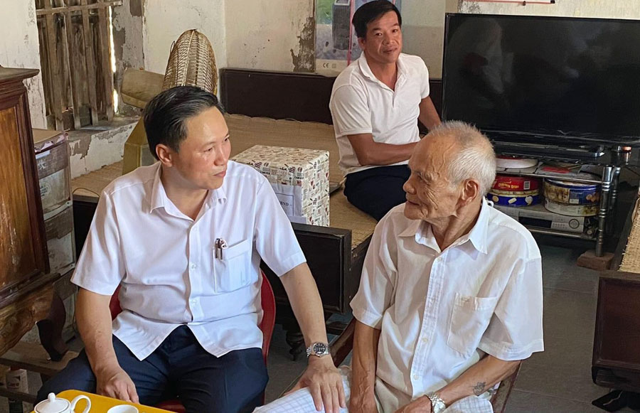 Đồng chí Đặng Bá Cường, Trưởng Ban Nội chính Thành ủy đến thăm, tặng quà bà Vũ Thị Soi, sinh năm 1943, là vợ liệt sỹ Vũ Minh Thùy tại thôn Thống Nhất, xã Minh Tân và thăm, tặng quà ông Đoàn Đắc Trắc, sinh năm 1937, là người kháng chiến bị nhiễm chất độc hóa học, tại thôn Kim Sơn, xã Tân Trào.