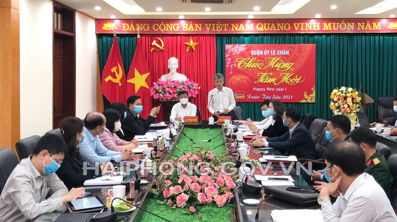 Qua nghe báo cáo, đồng chí Lê Trung Kiên, Trưởng Ban quản lý Khu Kinh tế Hải Phòng ghi nhận sự chủ động, tích cực của quận Lê Chân trong công tác chăm lo chu đáo Tết Nguyên đán Tân Sửu 2021 cho người dân, nhất là các hộ gia đình chính sách, người có công, những người yếu thế trong xã hội; thực hiện tốt công tác phòng, chống dịch; quyết liệt trong thực hiện dự án Hồ Sen-cầu Rào 2.