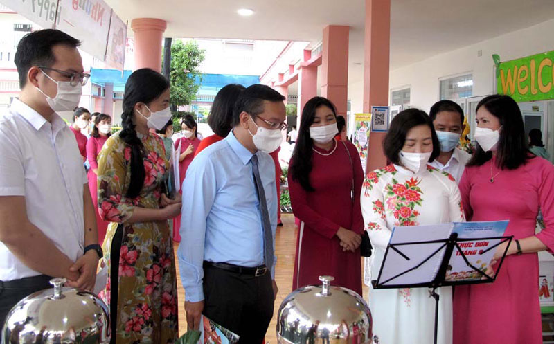 Sau lễ khai giảng, đồng chí Đào Khánh Hà, Trưởng Ban Tuyên giáo Thành ủy đã thăm hỏi, động viên đội ngũ cán bộ, giáo viên, nhân viên nhà trường. Đồng chí đề nghị tập thể cán bộ, giáo viên, nhân viên Trường Mầm non Sao Mai khắc phục khó khăn, thực hiện nghiêm quy định phòng, chống dịch bệnh COVID-19, bảo đảm an toàn tuyệt đối cho học sinh, giáo viên sau khi trở lại trường và đạt nhiều thành tích cao trong năm học mới.