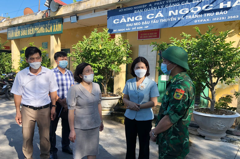 Đồng chí Trưởng Ban Tuyên giáo Thành ủy lưu ý, hiện nay tình hình dịch bệnh COVID-19 diễn biến phức tạp, trong khi đó, cảng cá là nơi tập trung đông người, phương tiện đến thu mua nên tiềm ẩn nhiều nguy cơ lây lan dịch bệnh nếu không được kiểm soát chặt chẽ. Vì vậy, quận Đồ Sơn cần thường xuyên chỉ đạo lực lượng chức năng phối hợp Đồn Biên phòng Đồ Sơn để nắm chắc người, phương tiện, không để sót, lọt người, phương tiện đến cảng mà không được khai báo y tế, kiểm soát thông tin; liên tục nhắc nhở người dân thu mua hải sản tuân thủ nghiêm việc đeo khẩu trang, giãn cách theo quy định. Đồng chí đề nghị UBND quận Đồ Sơn phối hợp ngành Y tế triển khai việc lấy mẫu xét nghiệm ngẫu nhiên với virus SARS-CoV2 với người dân, ngư dân tại cảng cá Ngọc Hải.