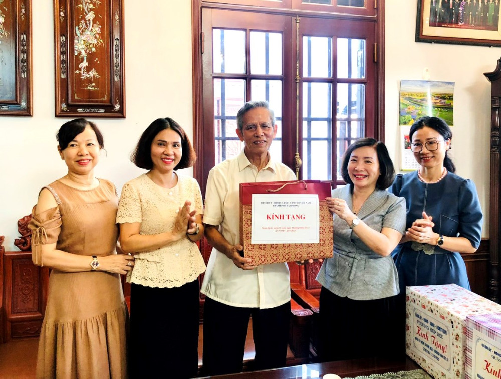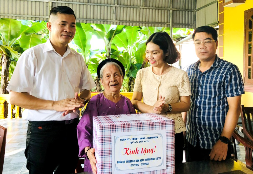 Đến thăm, tặng quà Mẹ Việt Nam anh hùng Nguyễn Thị Hiên, 96 tuổi, ở Tổ dân phố Quang Trung, phường Minh Đức; ông Nguyễn Quang Liễn, 80 tuổi, là người hoạt động kháng chiến bị nhiễm chất độc hóa học, ở Tổ dân phố Đức Hậu 1, phường Hợp Đức (quận Đồ Sơn). Đồng chí Đào Khánh Hà, Trưởng Ban Tuyên giáo Thành ủy ân cần thăm hỏi tình hình sức khỏe, đời sống, bày tỏ tri ân những đóng góp, hy sinh của các thương binh, gia đình chính sách trong sự nghiệp xây dựng và bảo vệ Tổ quốc. Đồng thời, kính chúc các cụ luôn mạnh khỏe, sống vui, nêu gương sáng, động viên con cháu phát huy truyền thống gia đình, tích cực tham gia xây dựng quận, thành phố ngày càng giàu đẹp, văn minh.