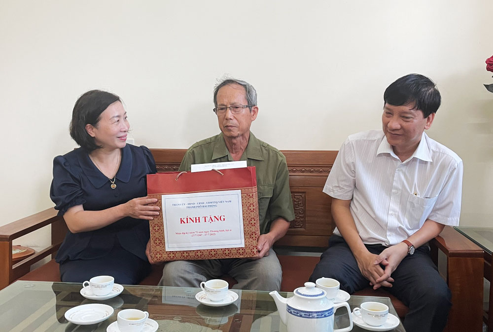 Nhân dịp kỷ niệm 75 năm Ngày Thương binh, liệt sỹ (27/7/1947-27/7/2022), chiều 20/7, đồng chí Đào Khánh Hà, Ủy viên Ban Thường vụ Thành ủy, Trưởng Ban Tuyên giáo Thành ủy đi thăm, tặng quà các cá nhân, gia đình người có công trên địa bàn quận Dương Kinh. Cùng đi có đại diện lãnh đạo Sở Lao động-Thương binh và Xã hội và quận Dương Kinh.