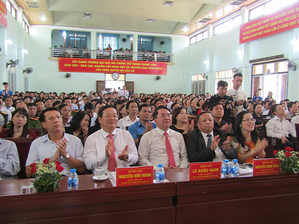Các đồng chí: Nguyễn Đình Bích, Ủy viên Ban Thường vụ Thành ủy, Phó Chủ tịch Thường trực HĐND thành phố; Lê Khắc Nam, Ủy viên Ban Thường vụ Thành ủy, Phó Chủ tịch UBND thành phố; Nguyễn Hữu Doãn, Ủy viên Ban Thường vụ Thành ủy, Trưởng Ban Tuyên giáo Thành ủy; Bùi Đức Quang, Trưởng Ban Dân vận Thành ủy cùng lãnh đạo các vụ, cục thuộc Bộ GD-ĐT dự Lễ khai giảng Trường Đại học Hải Phòng