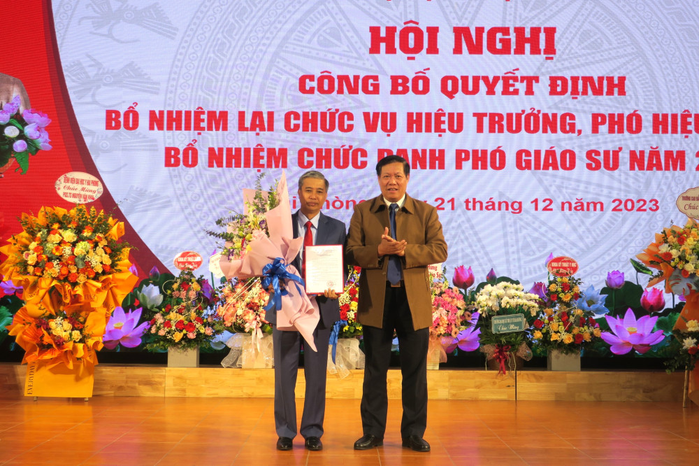 Hội nghị cũng công bố Nghị quyết của Hội đồng Trường Đại học Y Dược Hải Phòng quyết định bổ nhiệm lại với PGS.TS.GV Phạm Văn Mạnh giữ chức vụ Phó Hiệu trưởng phụ trách kinh tế Trường Đại học Y Dược Hải Phòng, kể từ ngày 15/1/2024 theo nhiệm kỳ 2020-2025 của Hội đồng Trường Đại học Y Dược Hải Phòng.