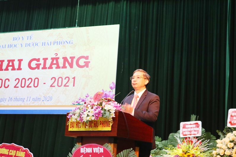 Đồng thời, thầy Hiệu trưởng cũng cảm ơn các em đã tin tưởng và chọn trường Đại học Y Dược Hải Phòng là nơi khắc dấu thời gian cho tương lai mới, nơi các em rèn đức, luyện tài để trở thành những cán bộ y tế vừa hồng vừa chuyên trong tương lai. Ngoài ra, thầy Hiệu trưởng cũng dặn dò các tân sinh viên trong quá trình học tập tại trường Đại học Y Dược Hải Phòng phải “Học để làm người, học để làm việc và học để cống hiến”.