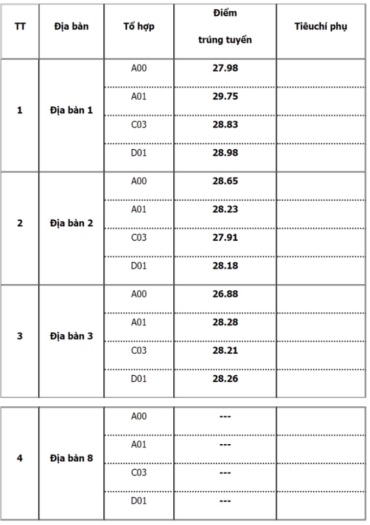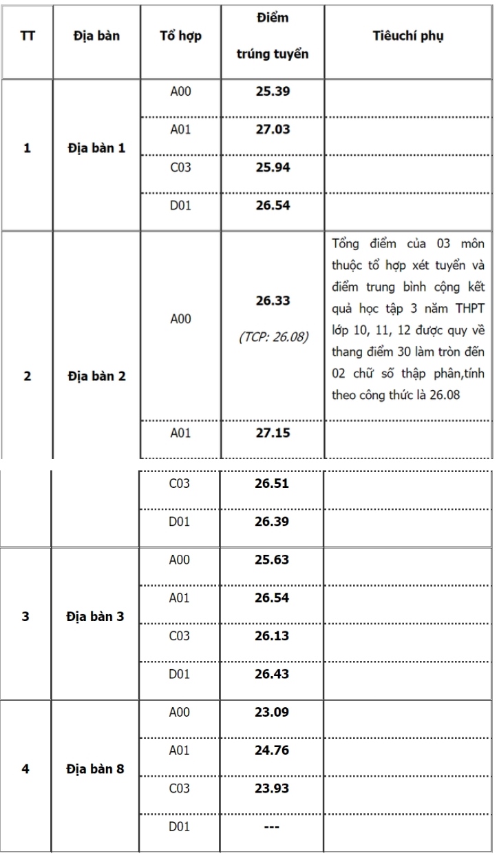 Phương thức 3: Xét tuyển theo kết quả thi tốt nghiệp THPT theo các tổ hợp (A00, A01, C03, D01) kết hợp với kết quả học tập THPT.
