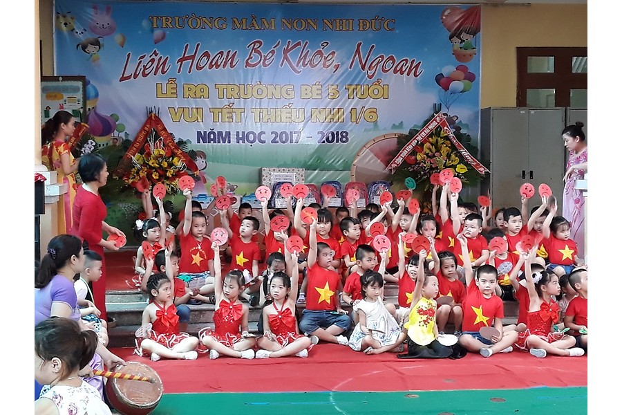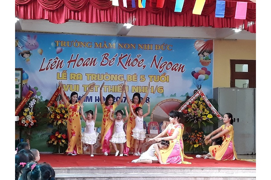 Chào mừng ngày Quốc tế thiếu nhi 1/6 và Tháng hành động vì trẻ em, ngày 24-5, Trường mầm non Nhi Đức (quận Kiến An) tổ chức Liên hoan bé khoẻ, bé ngoan, lễ ra trường cho các bé 5 tuổi.