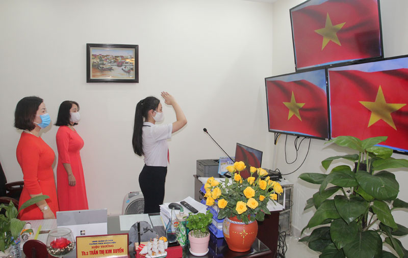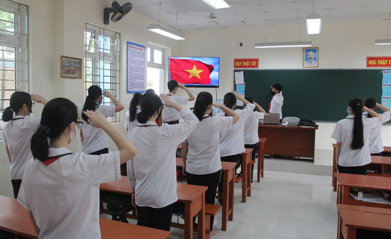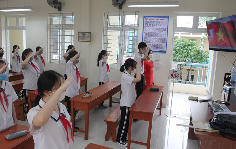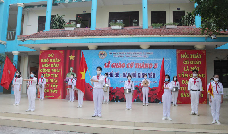 Sáng 4/5, Trường THCS Hoàng Diệu, quận Lê Chân tổ chức Lễ chào cờ trực tuyến tháng 5 với chủ đề “Bác Hồ kính yêu” theo đơn vị lớp để đảm bảo cự ly giãn cách phòng, chống dịch bệnh COVID-19. Đây là một hoạt động có ý nghĩa quan trọng trong việc giáo dục học sinh lòng yêu nước, tự hào dân tộc; giúp học sinh thêm gắn bó với trường lớp, thầy cô giáo và bạn bè sau những ngày nghỉ dài do dịch bệnh, tạo động lực, tâm thế giúp các em hứng thú bước vào tháng học mới, đặc biệt là tháng 5/2020 với nhiều ngày lễ lịch sử và đặc biệt là kỷ niệm 130 năm Ngày sinh Chủ tịch Hồ Chí Minh (19/5/1890 – 19/5/2020).