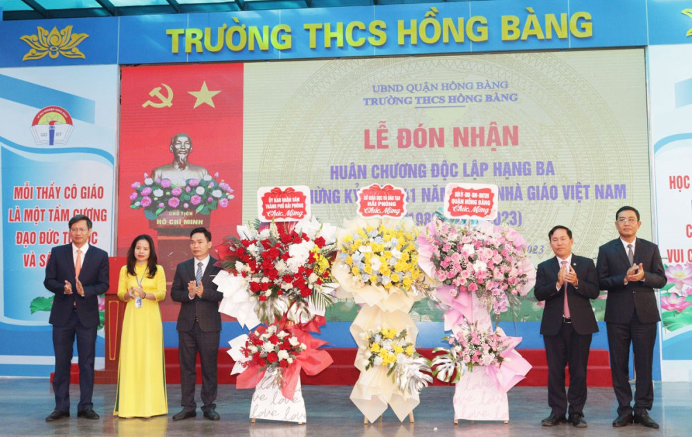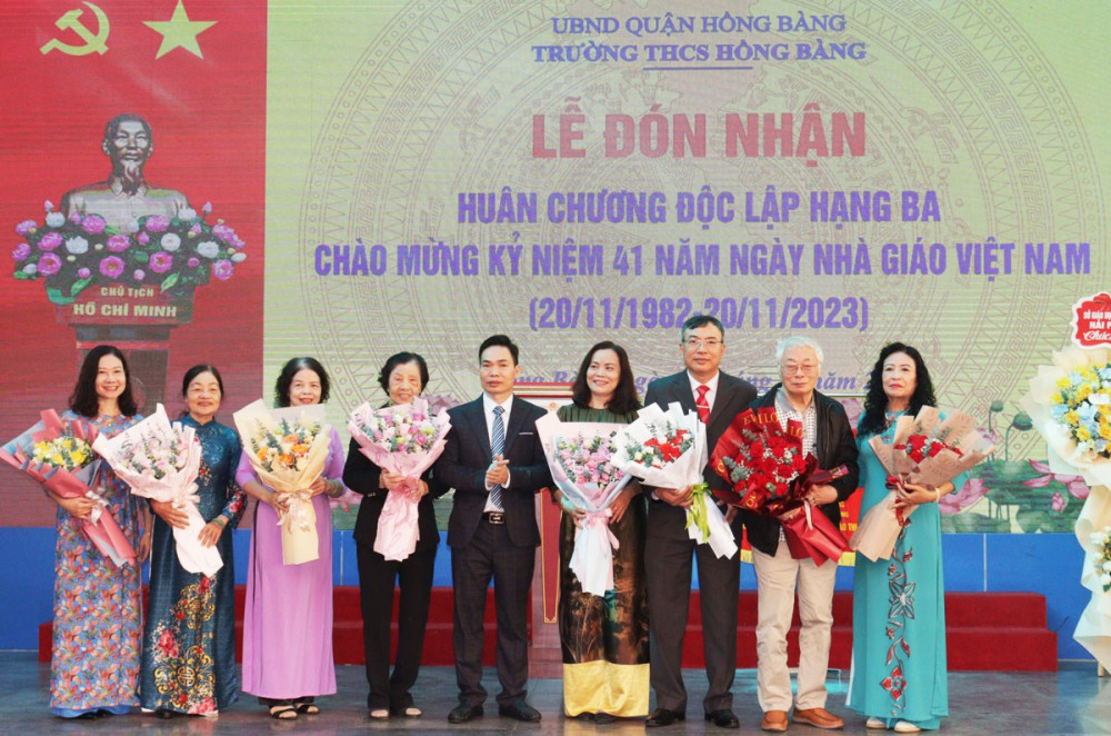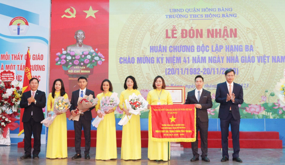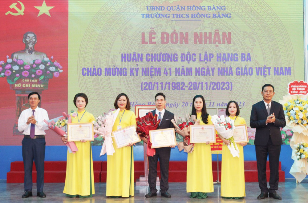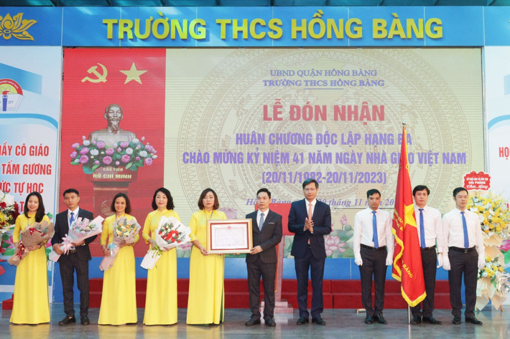 Sáng 20/11, Trường THCS Hồng Bàng, quận Hồng Bàng tổ chức Lễ đón nhận Huân chương Độc lập hạng Ba và Kỷ niệm 41 năm Ngày nhà giáo Việt Nam (20/11/1982-20/11/2023).