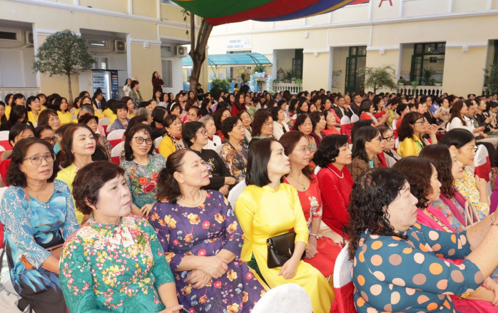 Tại chương trình, Trường THCS Hồng Bàng cũng tặng hoa tri ân bày tỏ lòng cảm ơn sâu sắc trước sự đóng góp to lớn của các thế hệ cán bộ quản lý, các thầy cô giáo nhà trường; các thế hệ thầy cô giáo là những người đặt nền móng, là tấm gương sáng cho các thế hệ giáo viên, học sinh noi theo.