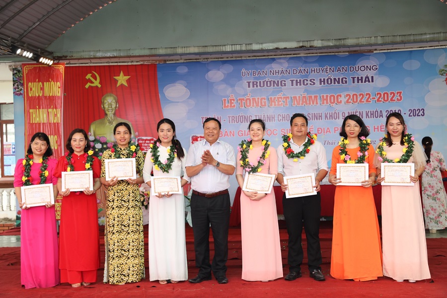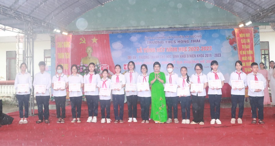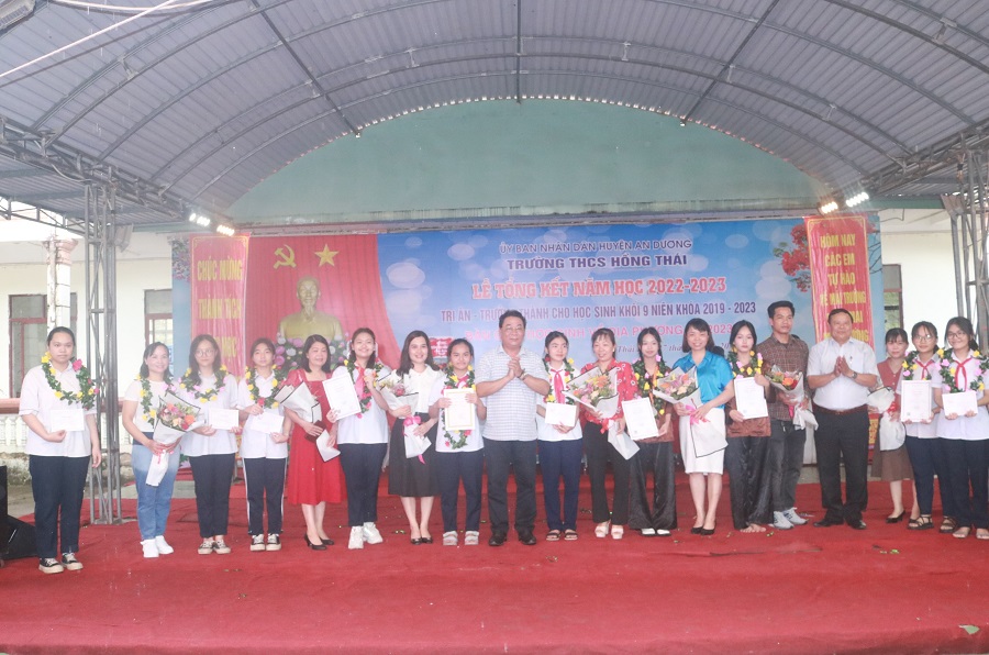 Sáng 27/5, Trường THCS Hồng Thái (An Dương) tổ chức hội nghị tổng kết công tác năm học 2022-2023; lễ trưởng thành cho học sinh lớp 9 niên khóa 2019-2023 và bàn giao học sinh về địa phương hè năm 2023.