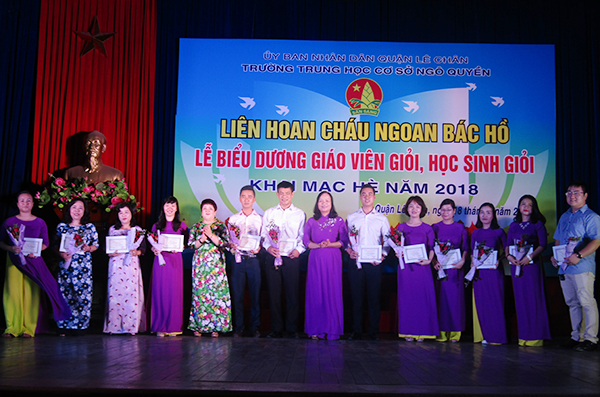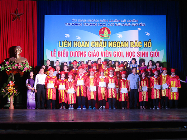 Sáng 18-5, tại nhà văn hóa quận Lê Chân, Trường THCS Ngô Quyền tổ chức Liên hoan cháu ngoan Bác Hồ và trao thưởng giáo viên, học sinh giỏi năm 2018. Đây là một hoạt động thiết thực chào mừng 63 năm giải phóng Hải Phòng, 77 năm ngày thành lập Đội TNTP Hồ Chí Minh.