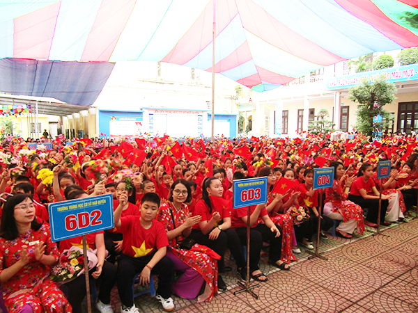 Cô trò Trường THCS Ngô Quyền tươi vui, phấn khởi trong ngày khai giảng