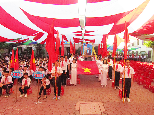 Học sinh Trường THCS Tô Hiệu (quận Lê Chân) trang trọng trong Lễ khai giảng năm học 2018-2019
