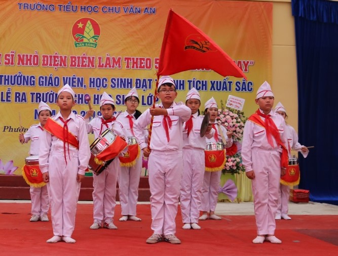 Nghi lễ đội tại Ngày hội “Chiến sỹ nhỏ Điện Biên làm theo 5 điều Bác Hồ dạy” của Trường Tiểu học Chu Văn An