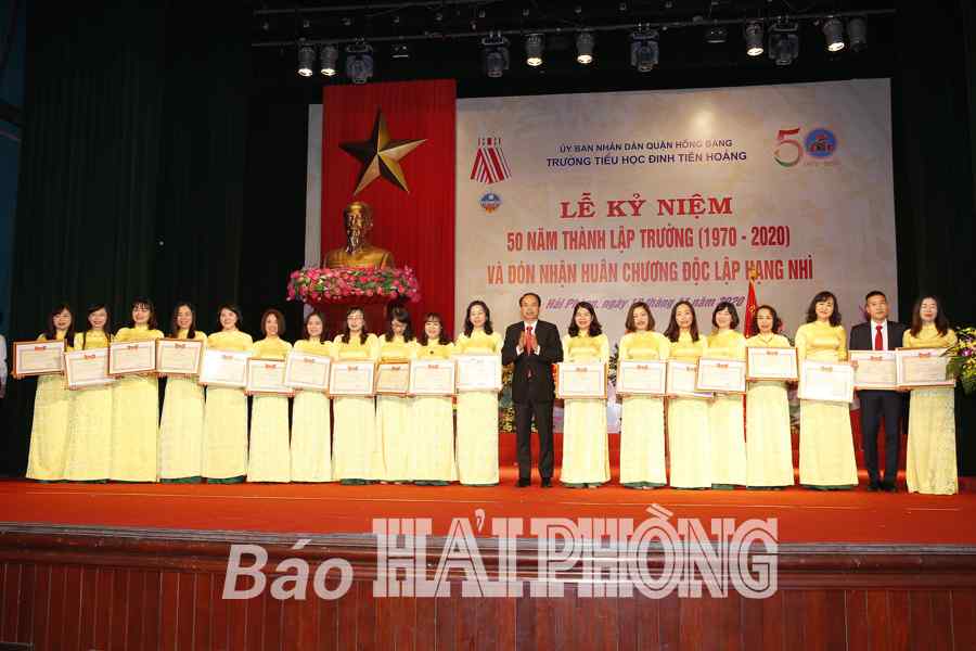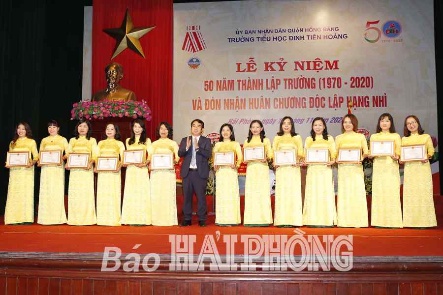 Sáng 19-11, Trường tiểu học Đinh Tiên Hoàng tổ chức lễ kỷ niệm 50 năm Ngày thành lập, 38 năm Ngày Nhà giáo Việt Nam, 65 năm Ngày truyền thống Giáo dục Hải Phòng. Dự lễ kỷ niệm có đồng chí Lê Khắc Nam, Phó chủ tịch UBND thành phố, lãnh đạo các sở Giáo dục-Đào tạo, Lao động-Thương binh và Xã hội, quận Hồng Bàng cùng đông đảo các thầy, cô giáo, học sinh nhà trường.