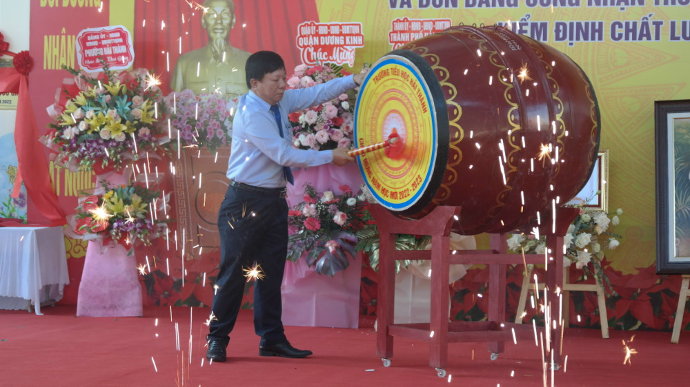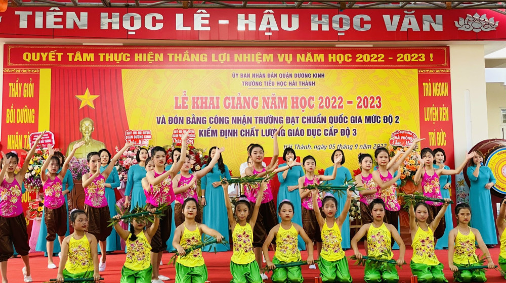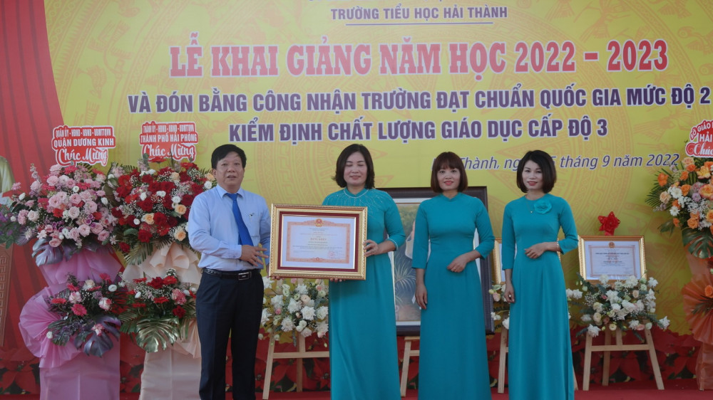 Sáng 5/9, Trường Tiểu học Hải Thành (quận Dương Kinh) long trọng tổ chức Lễ khai giảng năm học mới 2022-2023 và đón Bằng công nhận trường đạt Chuẩn Quốc gia mức độ 2, kiểm định chất lượng giáo dục cấp độ 3. Phó Chủ tịch UBND thành phố Nguyễn Đức Thọ tới dự và chung vui cùng cô, trò nhà trường.