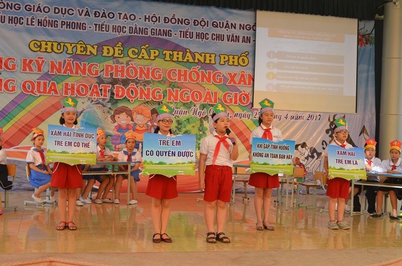 Học sinh tham gia chương trình chuyên đề cấp thành phố tổ chức tại trường tiểu học Lê Hồng Phong