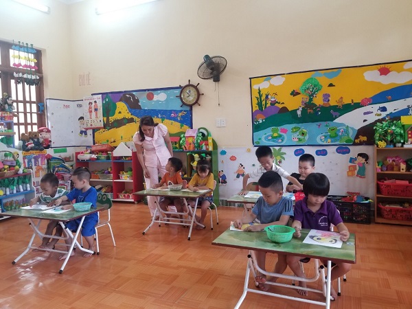 Về việc chăm sóc chế độ dinh dưỡng cho trẻ trên đảo cũng được nhà trường và các cô chú trọng, quan tâm hàng đầu. Cũng theo cô Ngoan: chăm sóc dinh dưỡng phát triển triển thể chất cho trẻ ở độ tuổi mầm non là một trong những nội dung góp phần giáo dục toàn diện cho trẻ. Chính vì lẽ đó, trong những năm qua nhà trường luôn chú trọng đến chế độ dinh dưỡng hợp lý, thường xuyên quan tâm đến việc xây dựng thực đơn cho trẻ, xây dựng khẩu phần ăn đảm bảo về chất và cân đối về lượng. Bữa ăn của trẻ thường xuyên được đảm bảo 4 nhóm thực phẩm gồm chất đạm, chất béo, rau xanh, tinh bột… đảm bảo đủ dinh dưỡng cho trẻ phát triển.