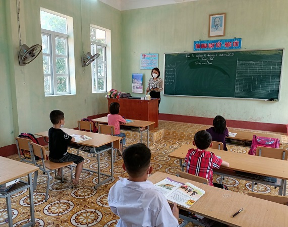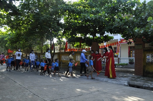 Gặp Nguyễn Tuấn Anh, học sinh lớp 5 của nhà Trường đang đá bóng cùng hai bạn, tôi lại gần hỏi và được em cho biết: lớp học của em ít bạn lắm, chỉ có hơn 10 đứa. Mấy hôm nay, trong lớp có 4 bạn bị nhiễm Covid-19 nên đã tạm nghỉ học để vào đất liền chữa bệnh. Tuấn Anh cũng như các bạn cùng lớp rất thích đến trường để học cùng thầy cô giáo và chơi đùa cùng nhau. Ở đây, thầy cô giáo cũng rất yêu quý và hòa đồng với học sinh, coi các em như con.