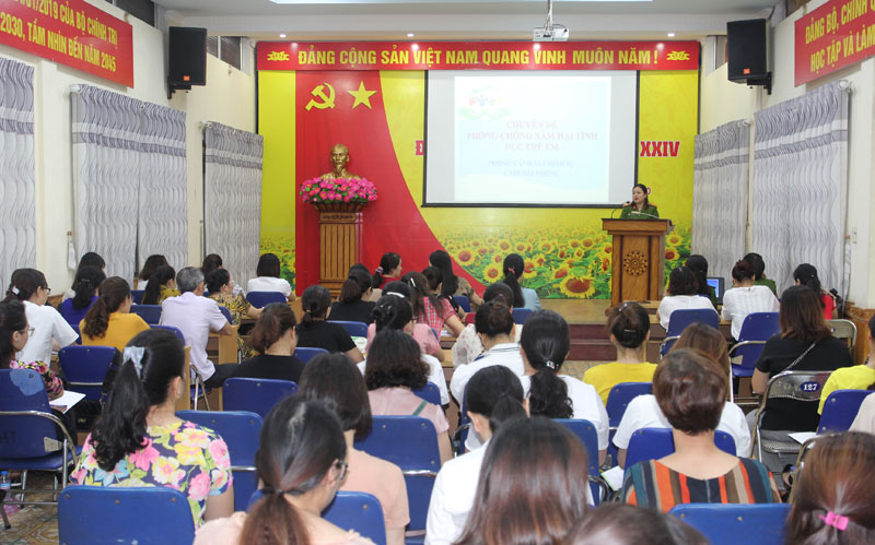 Hội nghị được báo cáo viên Hội phụ nữ Phòng PC02 Cảnh sát hình sự, Công an thành phố tuyên truyền về chống tai nạn thương tích, bạo lực, xâm hại trẻ em, bảo vệ trẻ em trong thế giới công nghệ số nhằm nâng cao hiểu biết và trang bị các kiến thức, kỹ năng để hướng dẫn các em chủ động phòng, chống tai nạn thương tích, nhất là trong kỳ nghỉ hè và phòng, chống nạn bạo lực, xâm hại tình dục trẻ em để trẻ em có môi trường sống lành mạnh, an toàn, không bạo lực, không bị xâm hại.