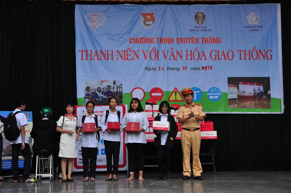 Chương trình truyền thông gồm tiểu phẩm học sinh với văn hóa sử dụng điện thoại, cách đội mũ, điều khiển xe máy, tham gia bộ câu hỏi về an toàn giao thông, tập huấn an toàn giao thông và lái xe an toàn. Lồng ghép trong chương trình, Đội Cảnh sát giao thông đường sắt, Phòng CSGT đường bộ – đường sắt phát tờ rơi về an toàn giao thông với nhiều nội dung về quy tắc giao thông đường bộ, quy định về người điều khiển xe mô tô, xe gắn máy… hướng dẫn phân biệt 4 loại biển báo cơ bản… Đối với các học sinh trả lời đúng các câu hỏi về an toàn giao thông, Ban tổ chức buổi truyền thông thanh niên với văn hóa giao thông tại trường THPT Lý Thái Tổ đã trao giải, tặng quà gồm 100 mũ bảo hiểm, áo mưa cho các học sinh.